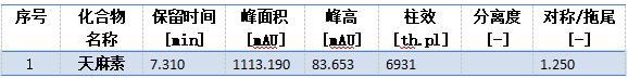 取天麻素對(duì)照品適量,精密稱定,加流動(dòng)相制成每1ml含50μg的溶液,即得。