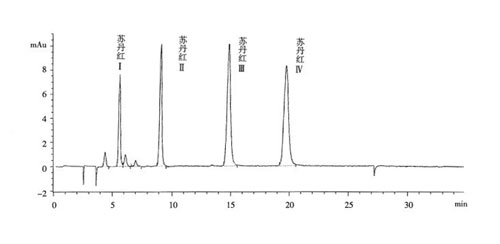 檢測波長:蘇丹紅Ⅰ為478nm,蘇丹紅Ⅱ、蘇丹紅Ⅲ、蘇丹紅Ⅳ均為520nm。
