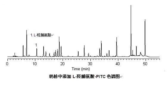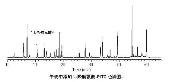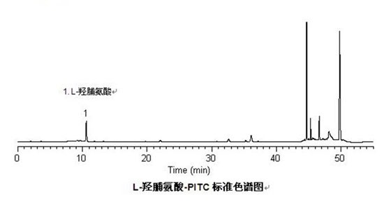 賽智科技應(yīng)用質(zhì)檢部采用L-羥脯氨酸衍生方法,利用公司自己的LC-10Tvp高效液相色譜儀,對(duì)L-羥脯氨酸進(jìn)行了分析檢測(cè)試驗(yàn),并通過(guò)公司的VI2010色譜工作站進(jìn)行了詳細(xì)分析,得出的檢測(cè)結(jié)果準(zhǔn)確,可靠。