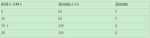 流動相:以甲醇為流動相A,以緩沖溶液為流動相B,按下表規定經行梯度洗脫;