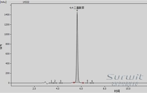 以下是賽智科技利用LC-10Tvp高效液相色譜儀對二溴聯苯進行的HPLC檢測方案。