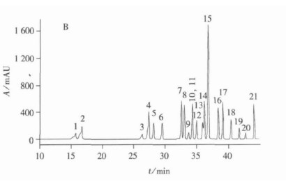色譜柱:Vertex C18柱,250mm x 4.6 mm,5μm;