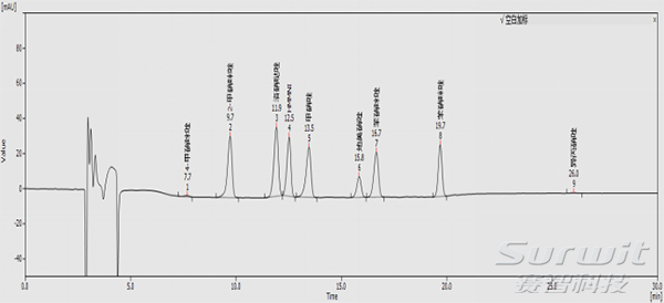 色譜柱:C18, 4.6 mm*250 mm,粒度5 μm