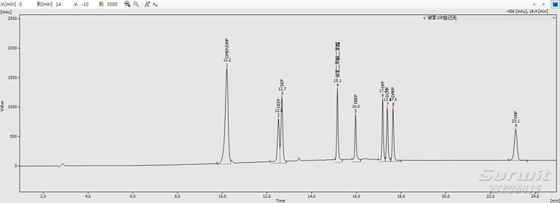 將16 種鄰苯二甲酸酯標準品用乙腈配制成三種不同濃度的系列工作標準使用液。(如果測定樣品中有DNOP、DINP,把這兩種標準品濃度,提高10-20倍,因為這兩種難分離、出峰小,不好識別)