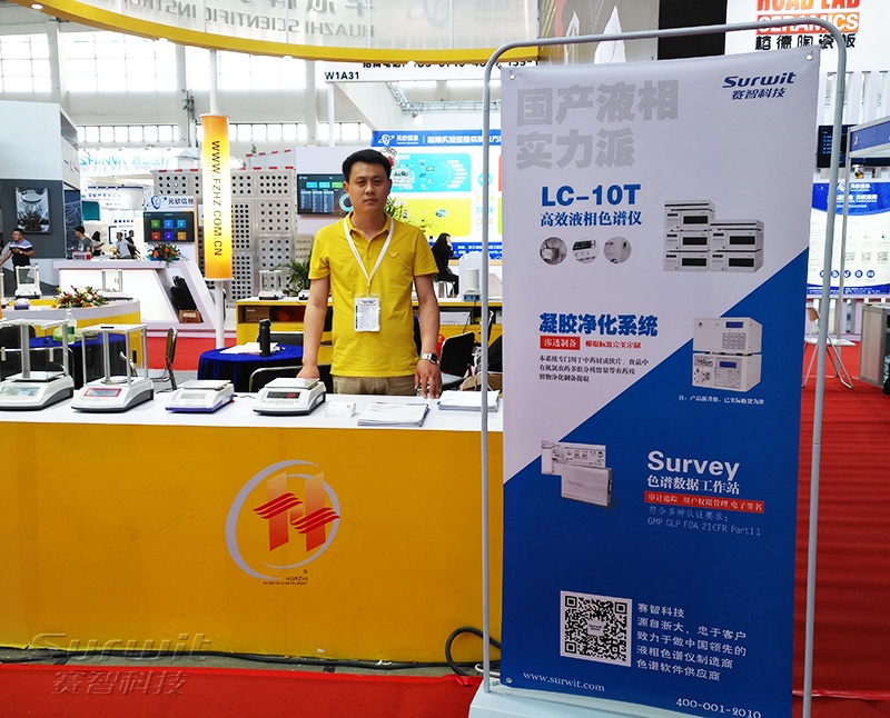本次會議的展品:新版LC-10T高效液相色譜儀,與舊款相比更加美觀實用。具有審計追蹤功能的Survey工作站軟件,符合GMP認證要求。