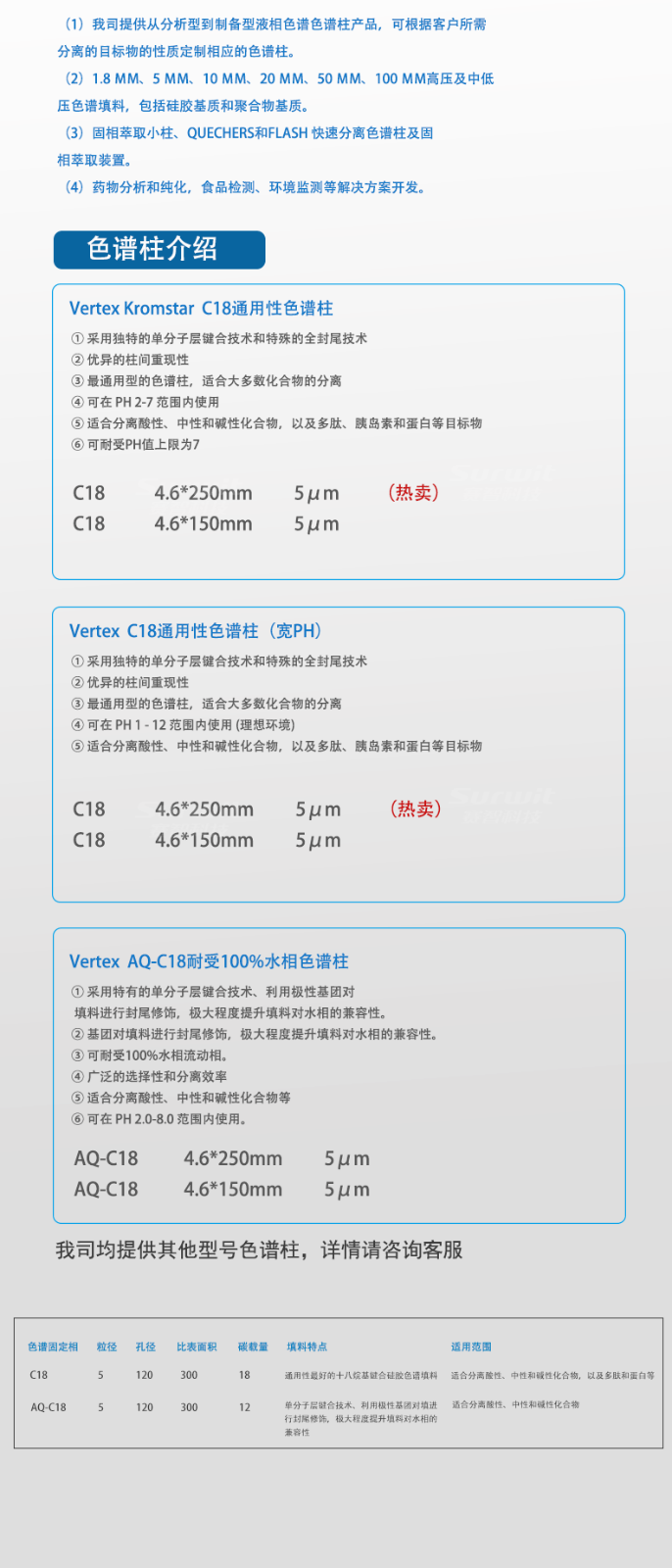 Vertex C8的鍵合相對極性和堿性化合物的分離表現出極好的峰形,同時在很寬的pH值范圍內穩定性好、使用壽命長。