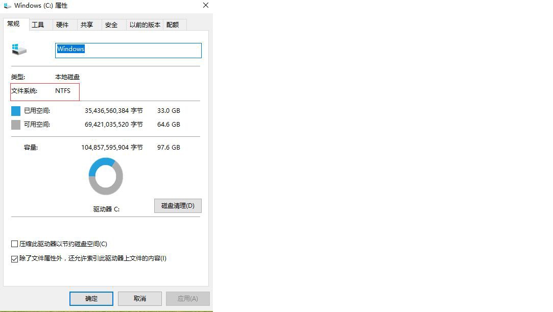 1、確定NTFS文件系統方法:硬盤→右鍵→屬性