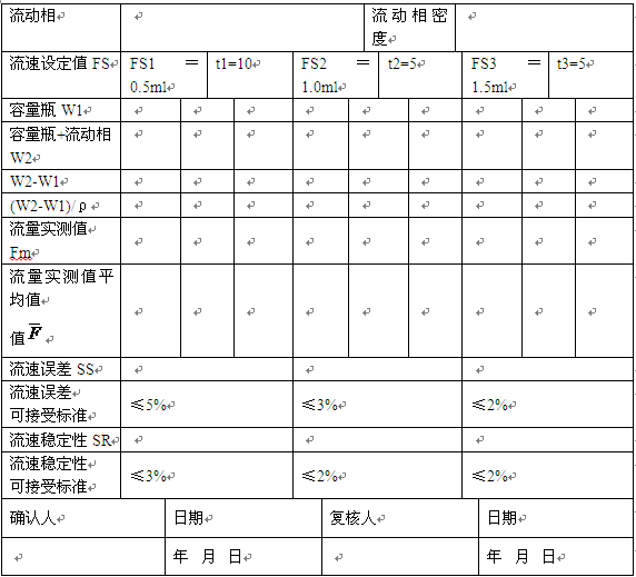 附表 泵流量設(shè)定值誤差、流量穩(wěn)定性誤差的確認(rèn)